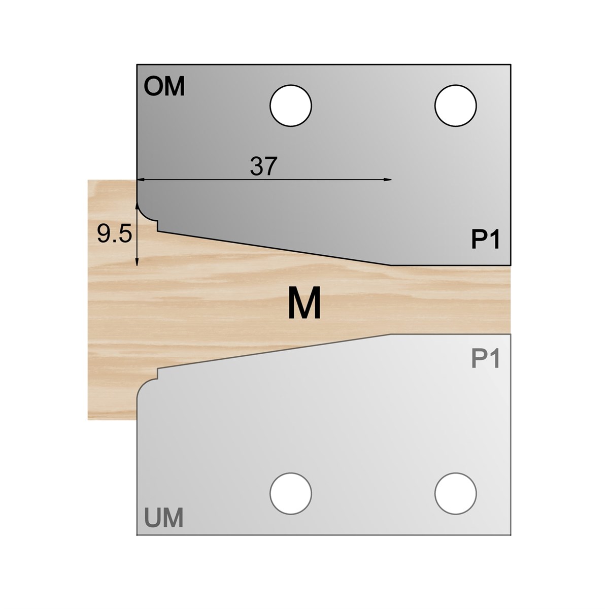 OM Panel Profile Cutter P1 in HSS High Speed Steel. For 140 & 190 Panel Blocks