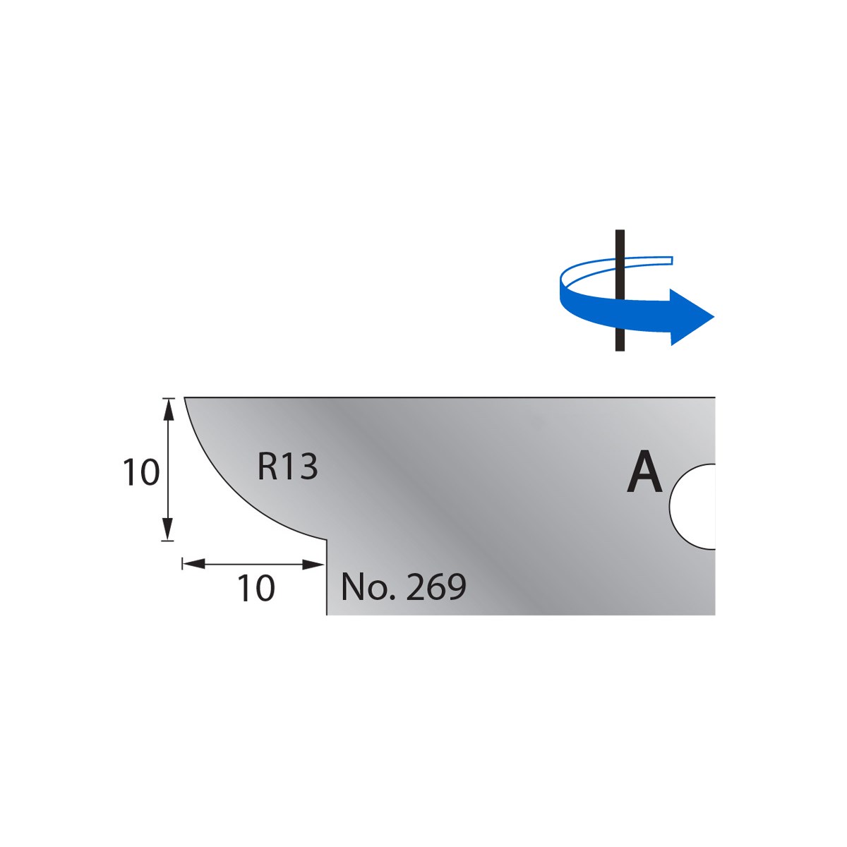 Profile Cutter 269 in HSS High Speed Steel. Suitable for 200 series 30 mm high 147 x 30 Sedgwick 3rd Head and 125 diameter to 300 diameter Tenon Discs (anti Clock) on spindle moulder
